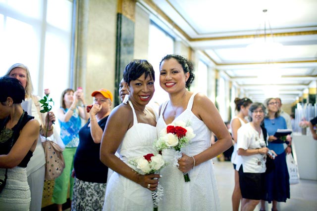 Photograph by Katie Sokoler/Gothamist - Gothamist rejoiced as same sex marriages were held all over New York City and New York State! All told, 484 marriages were conducted last Sunday, the first day same sex marriage was legal.