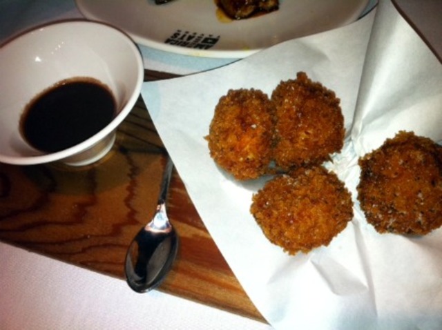 For starters, deboned wings pay a glorious tribute to Buffalo’s Anchor Bar version, packed with flavor and a blue cheese sauce flourish on top. But the wings at Anchor Bar don’t cost $3.50 each. I’ve had a very similar bite at Minibar with which the per-wing price is more in line.