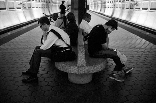 DCist Flickr pool mainstay, furcafe, gives us a trifecta of photos, each featuring a pair of folk going about their daily lives. The daily commute. The cafe squat. The post-work brew — this one featuring our illustrious DCist leader. People watching aside, these shots create natural diptychs between the two subjects. Man-Woman. Work-Play. Beard-Beard, ummm that one could use some work.