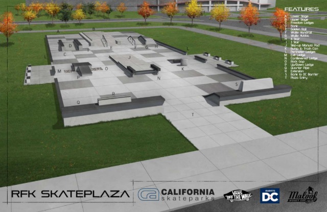 I briefly mentioned the news in this morning’s roundup, but the always-industrious Lydia DePillis put her nose to the grindstone and found a rendering of the skate park which will be erected on a parcel of the RFK Stadium concrete desert Festival Grounds. The park will be built to play host to the Maloof Money Cup, in which pro skaters will battle for, uh, money inside the brand new park, which aims to mimic Freedom Plaza: