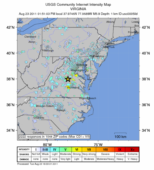 ORIGINAL POST: An earthquake with a preliminary magnitude of 5.8 hit the District of Columbia this afternoon. We’re hearing that most, if not all, federal buildings have been evacuated and phone service is apparently down for most of the region. Obviously, more details when we get them.