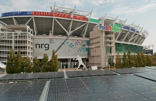 Yesterday Snyder and executives from power company NRG unveiled a new installation of solar panels outside of FedEx Field, the largest of its kind at an NFL stadium. According to a press release, the 8,000 solar panels will provide 20 percent of the stadium’s power on game day and 100 percent on non-game days, while offering shade to 841 cars in the parking lot. Moreover, the panels will power 10 charging stations for electric cars like the Chevy Volt. According to the team, the power generated by the panels will help keep 1,780 metric tons of carbon out of the atmosphere each year, roughly what 349 cars would produce.