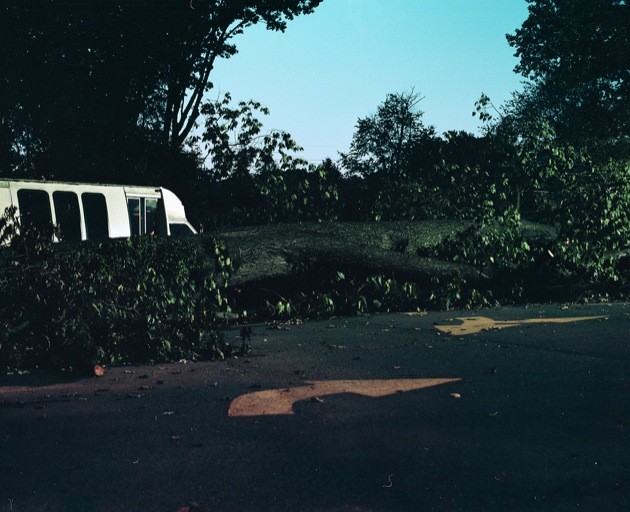 As practiced by masters of the form such as Lewis Baltz and Ed Ruscha, the parking lot photo can rise to the level of art. In this dense composition, the downed tree, the obstructed shuttle and the aggressive arrows add to the sense of unease. Mysterious! Made with a Mamiya RB 67 medium format film camera by abe.o.