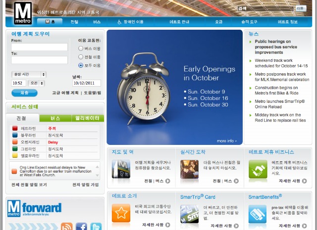 UPDATE: Well, someone very familiar with Seoul is in the house — South Korean President Lee Myung-bak is in the District this week for an official state visit. No word from WMATA HQ on whether this is the reason for the website translation, but it’s our best educated guess.