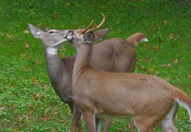 PhilaSilva caught two dears in a touching moment of grooming. It seems like animals are not that much different from us, that is if Chris Rock is to be believed. The wise sage once said that, “Then your woman got a hold on you, she cut your hair, washed you down, gave you a Life Saver, wiped the crust outa your eyes…” Looks like this Buck is lining up his next Life Saver.