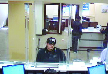 The suspect, pictured at right, is a middle-aged Hispanic man with a medium build who is between 5’7″ and 5’10”. The man appears to have an affinity for hats; during both the September 30 robbery at 1804 Adams Mill Road NW — to which Washington City Paper staffer Jeff Boswell was a witness — and an attempted robbery on October 7 inside the 1100 Connecticut Avenue NW branch, he was wearing caps. (I’m sure the feds really appreciate the guy repping FBI-branded gear.)