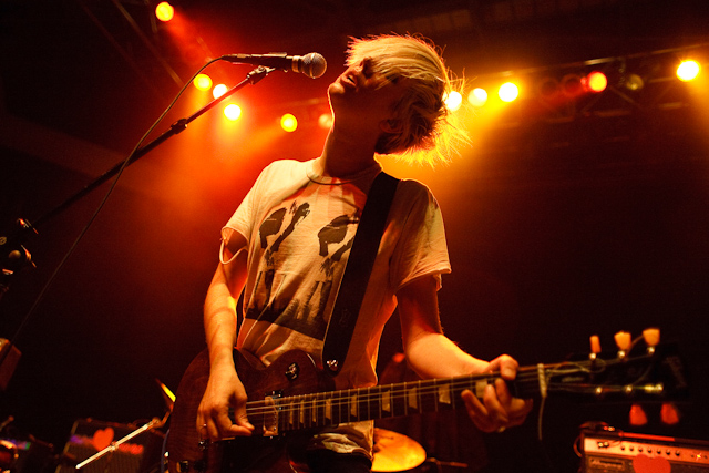 From a strictly musical standpoint, it was an utter shame that EMA — whose Past Life Martyred Saints is one of the year’s finest records — was allotted only about the same amount of time as the lip-syncing/prop-comedy performance by drag queen Summer Camp, who had the then-sparse crowd still buzzing with chuckles and chatter as Anderson began strumming the chords to her album-opening epic, “The Grey Ship”. People gradually began to pay attention as Anderson sang the quiet initial verses, and she and guitarist Nicky Mao finally left them no choice by stomping on their distortion pedals mid-song to unleash dramatic, tone-changing riffs and drones. With her sister Nicole wailing on the drums and Leif Shackelford adding color on keyboards and violin, Anderson declaimed haunting, incantational lyrics as the song culminated in thrilling bursts of explosive sound.