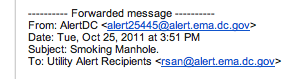 Poor AlertDC. Even when it’s actually providing District residents with somewhat valuable information potentially affecting more than six people, it has to use the subject which probably made a whole bunch of recipients chuckle and say “that’s what she said.” Heh, manhole.