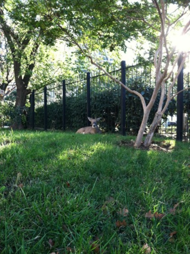 First a mountain lion is spotted around town, and now a buck is hopping fences at a busy Mount Pleasant gathering spot? Methinks the animals are taking this “occupy” thing a little too seriously.