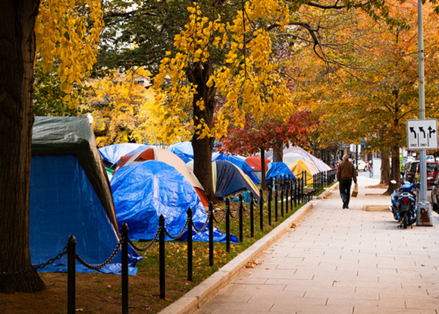 Photo by theqspeaks.This morning, a man was arrested inside the Occupy DC encampment at McPherson Square after he was found to have stolen supplies from the group’s supply tent.