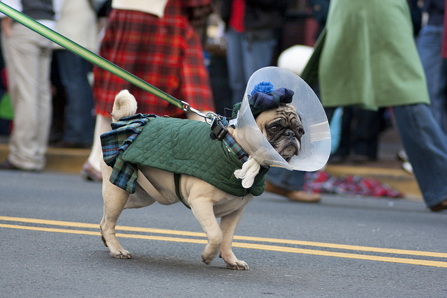 sarawithoutanh001’s subject manages to look regal despite his cone of shame. Traditional Scottish garb suits this little prancer.