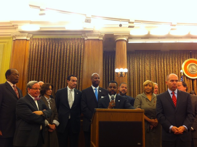 “I look forward to the day we become one state,” Gray said, playing off his “One City” theme. The mayor was joined at the podium by every member of the council except Vincent Orange (D-At Large), Muriel Bowser (D-Ward 4) and Harry Thomas Jr. (D-Ward 5), though the latter’s absence came of little surprise.