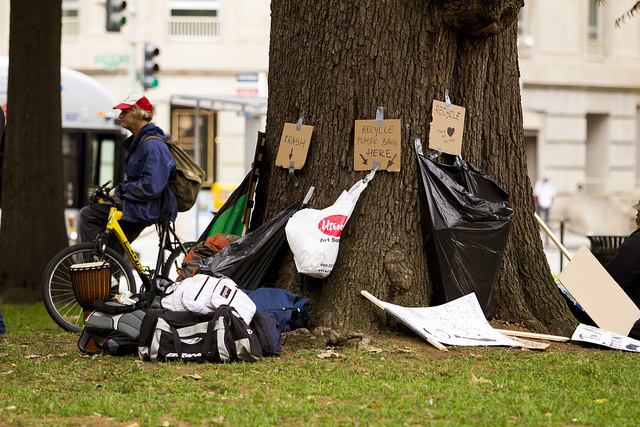 >>D.C. Department of Health officials found evidence of rats and threats of disease at Occupy D.C.’s McPherson Square encampment. Protestors responded by making a clean sweep that included creating a three to four foot high trash heap.