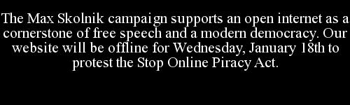 In Ward 4, though, D.C. Council contender Max Skolnik shut down his campaign website for the day, leaving only a message stating his opposition to the bill. He also added a “Stop SOPA” banner to his Twitter avatar.