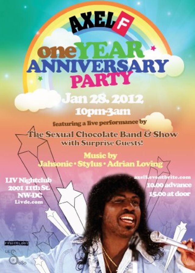 >> After a brief hiatus, the “Axel F” party is back to celebrate its 1st year of existence. While DJs Jahsonic, Stylus and Adrian Loving will still be manning the decks spinning “lazer boogie” and “champagne soul” tunes created between 1977 and 1987, there will be a special performance by the Sexual Chocolate Band (consisting of Zo!, Phonte,Debórah Bond, Ne’a Posey and N’digo Rose). As usual, everything will take place at Liv. $10 in advance / $15 at the door. 10 p.m.