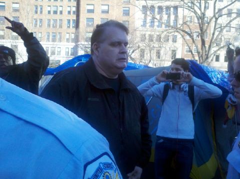 While relations between police and protesters have been mostly smooth today, Shaw said there’s been an uptick in the number of counter-protesters who have dropped in to express their dissatisfaction with Occupy’s continued presence. The tent-cutter, in addition to laying claim to the city, also made angry remarks about paying taxes and having equal access to public space, Shaw said. On her Twitter account, Shaw has advised her fellow protesters to react calmly. Some are breaking out into song to diffuse any moments of tension, choosing, among other numbers, selections from the musical South Pacific.