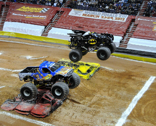 Because you can never have enough urban monster truck action. Batman vs. Stone Crusher at Verizon Center, courtesy of Pianoman75. (EXIF.)