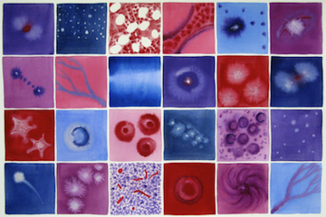 From the Cells to the Stars by Michele Banks, 2011, watercolor on paper, 22 x 30 inches>> Nature has created some of the most delicate and beautiful things on a microscopic scale so it’s no wonder that Michele Banks and Kendall Nordin have made some of them the subject of their latest works in their exhibition Our Small Rooms at the Cafritz Arts Center at Montgomery College. Banks uses watercolor to create jewel-toned portraits of viruses, bacteria, and other cells while Nordin creates site-specific mixed-media installations that focus on the complexity of autonomic cellular responses. Opening reception Thursday, 6 to 8 p.m.