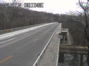 For example, a RWIS monitor on the Chain Bridge reports that the air temperature is a shade over 42 degrees, visibility is 1.1 miles and the temperature of the road surface is 49.1 degrees. You can also get pictures of the road that are regularly update; the picture of the Chain Bridge above was taken at 1:20 p.m.