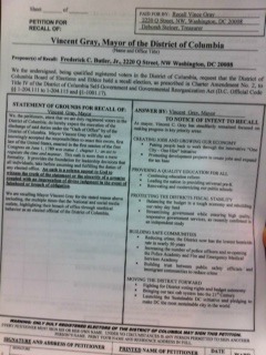 The recall petition for Mayor Vince Gray.The D.C. Board of Elections and Ethics today gave the OK to two recall petitions, one targeted at Mayor Vince Gray and the other at D.C. Council Chair Kwame Brown. Starting today, the petitions will be allowed to be circulated.