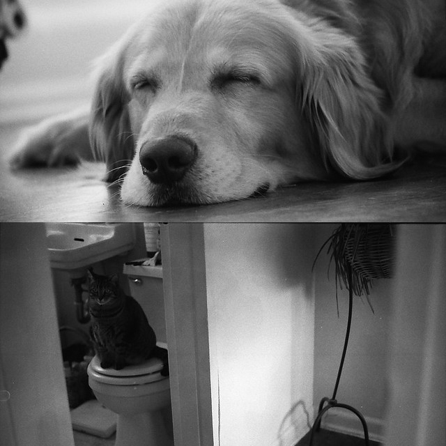 Nelson and Marley are our only dog and cat that live together. If they could breed, their adorableness could become one super cat/dog hybrid. Marley is the brain power of their duo, and has taught herself to use the facilities. Nelson is really, really good at being cute.