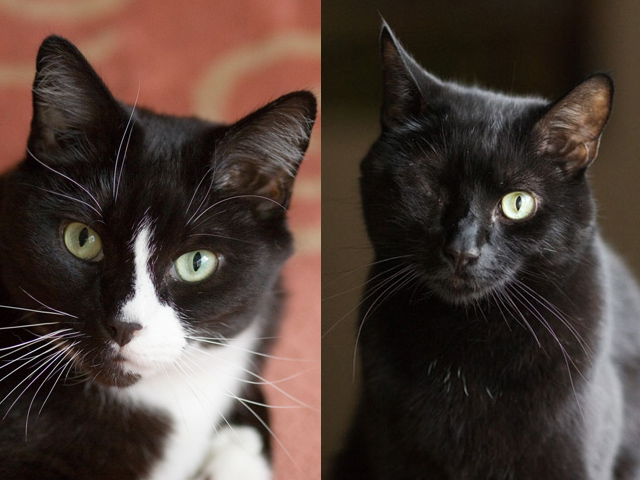 Our last cat combo is Pavlov and Eliot. If Pavlov’s beautiful black and white markings don’t ring your bell, Eliot’s missing eye is just the thing to see your vote. Seriously, this cat has one eye, throw him a bone.
