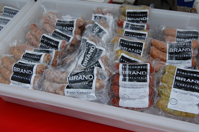 Stachowski also creates non-European style meats. When describing the Thai chicken sausage, the very first Stachowski product I tried, he softens his otherwise animated voice and explains the creation process with the delicate passionate tone of a chef. “There’s a lot of flavors in it. But they work really well together. That’s the deft hand of a chef seasoning the sausage. You’ve got all the elements: fresh herbs, mint, basil, lemongrass, ginger, lime, just enough fish sauce and Thai peppers in there. All that deliciousness, all that good flavor and then it’s simple to prepare. It’s wholesome.”