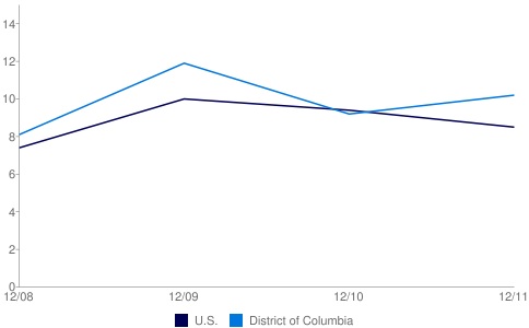 Unemployment in the District has also risen by about 20 percent since 2008.