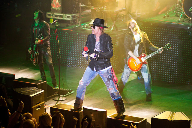 But much like the rock stardom excess that felled many of its contemporaries, Guns N’ Roses went for a little too much last night. At times, the show felt about as long as it took Rose to make Chinese Democracy. (That’s 15 years.) And while anyone thirsting for Guns n’ Roses would have been pleased with such a lengthy performance, it unfortunately flowed about as well as the Use Your Illusion double-album that stands as the last recording by the band’s old lineup. (Not well.)