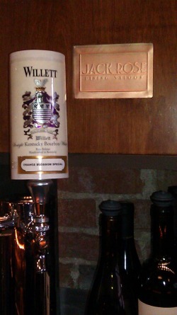 Photo courtesy of Rachel SergiForget Fernet Branca taps. That’s already been done in San Francisco. We’re on to small batch bourbon taps. Specifically we’re in to the Willett Orange Blossom Special on tap at Jack Rose starting tonight.