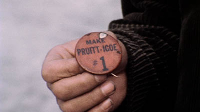 A city limits sign proudly boasts: “ST LOUIS POP. 856,796.” Like many places in the late 1940s, the Missouri city saw a post-war population boom, and with the boom came problems. Slumlords ruled the poor parts of town where people were crammed into tenements, and the city thought the answer was to expand. Officials planned for continued population growth to one million and beyond. The notorious Pruitt-Igoe public housing complex was born. It was supposed to solve the housing crisis, and, designed by architect Minoru Tamasaki, the proposed solution came in a sleek modern package. But the dreams of Utopia did not pan out as advertised. Tamasaki, shown briefly with a model of the project, also designed the World Trade Center, and alas, both projects were destroyed. Pace conspiracy theorists, in St. Louis, the end really was an inside job.
