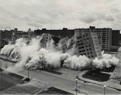 Iconic Photo of Implosion of a Pruitt-Igoe building. St Louis Post-Dispatch, courtesy State Historical Society of Missouri and First Run Features.A St. Louis public housing project went from Utopian vision to implosion in less than twenty years. A photo of its implosion became an iconic symbol, though what it was a symbol of depended on who you talked to: governmental excess, governmental neglect, the brutality of modernism, a collapsing society. But is this more than a story of inner-city decay? The title of a new documentary about the project suggests an alternate history to this textbook disaster, but it ultimately confirms the historical record without really getting to the bottom of it.