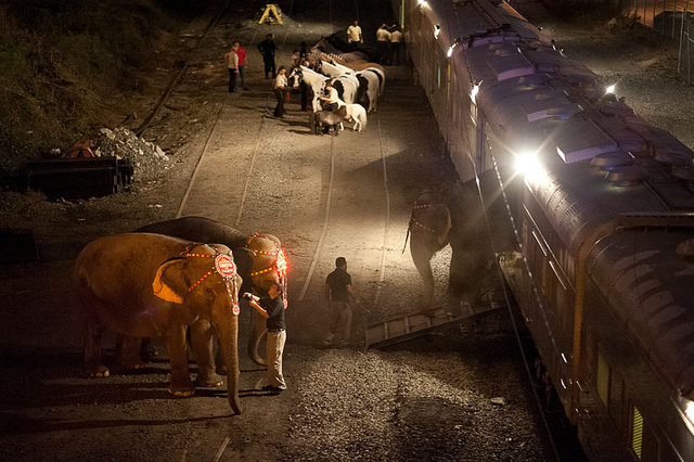 Six Asian elephants started at Garfield Park at Virgina and New Jersey avenues SE and walked past the U.S. Capitol before finally reaching the Verizon Center, where the circus will perform nine shows from Thursday to Sunday. Some Chinatown restaurants like Graffiato and Carmines offered pre-parade elephantine specials. The People for the Ethical Treatment for Animals, which abhors the circus for its treatment of animals (Ringling Bros. was fined $270,000 last year for violating the federal Animal Welfare Act), was no where to be found along the parade route, though protests outside the Verizon Center are planned for later in the week.