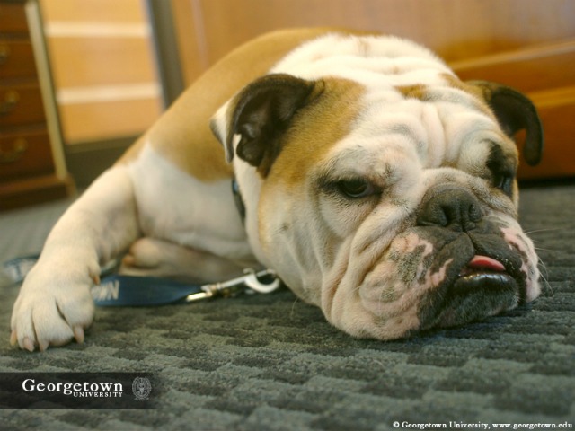 If you went to Georgetown or have been to any of its sporting events, you’ve likely seen Jack, the adorable bulldog that has served as the university’s official mascot since 1962. (To my knowledge, he’s the only real-life animal mascot in the city, unless Howard has a real bison on campus.) Well, Jack might be out of commission for the months to come—he’s injured.