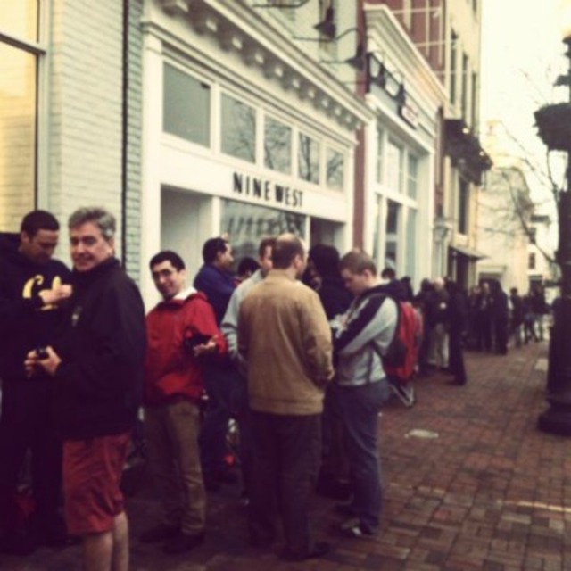 The crowd outside the Apple store in Georgetown at 7:40 a.m. Photo by @MichelleFieldsWith the iPad 3 having gone on sale today at 8:30 a.m., tech geeks from around the region started lining up outside the Georgetown Apple store in the early morning hours to get first crack at the increased processor speeds and new Retina display on the updated tablet.
