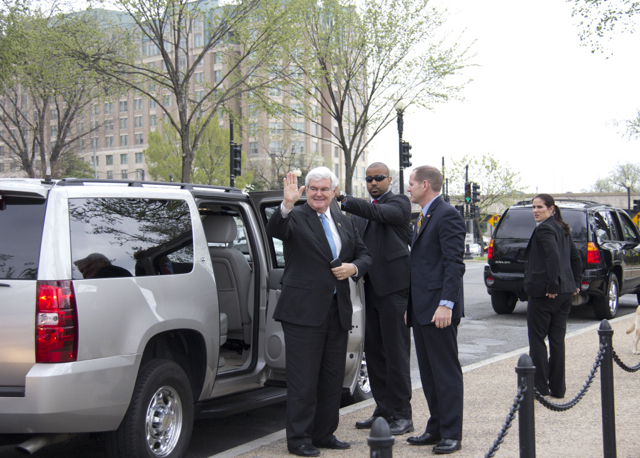 Presented without (much) comment, here are photos of Gingrich and his wife, Callista, taking a break from the Republican primary trail Sunday to stroll the Tidal Basin and take in the cherry blossoms. Look closely, and you might even see the the notoriously crankypants former House speaker wince out a smile.