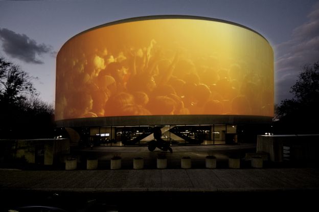 >> Beginning on Thursday at sunset and running until May 13 will be an incredible 360-degree presentation of moving images on the outside of the Hirshhorn Museum. Doug Aitken: SONG 1 will illuminate the façade of the cylindrical building every evening from sunset until midnight and will include an original soundscape. We fully expect to see photographs of this unique display in our Flickr pool. Before the display begins Doug Aitken will discuss the work with deputy director and chief curator Kerry Brougher. The discussion will begin at 7 p.m. in the Ring Auditorium. Seats are free but limited and available on a first come, first served basis. We’ll have more on this innovative installation, so stay tuned.