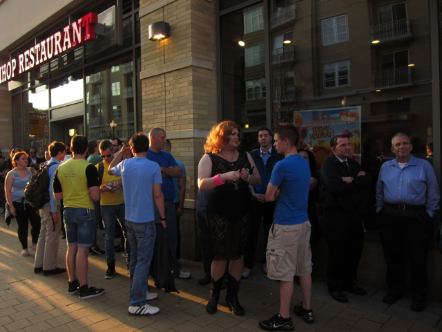 A mostly silent march in response to recent hate crimes began outside the IHOP restaurant on Irving Street NW in Columbia Heights. Early on the morning of March 11, a gay man was shot there after being drawn into a verbal argument that escalated into physical violence with another group of diners. He suffered non-life-threatening injuries, but it was just the first of at least three violent crimes that week targeting gay and transgender victims. Pressman and Brady’s friend was assaulted the following night at the intersection of Irving Street and Georgia Avenue NW. A transgender woman in the Trinidad neighborhood was attacked that evening, too.
