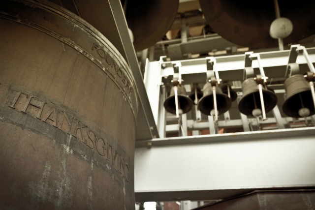 Thanksgiving peales out from the National Cathedral’s bells.