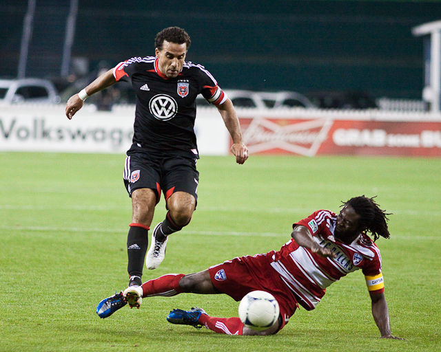 D.C. United’s Dwayne De Rosario evades Dallas’ Ugo Ihemelu.