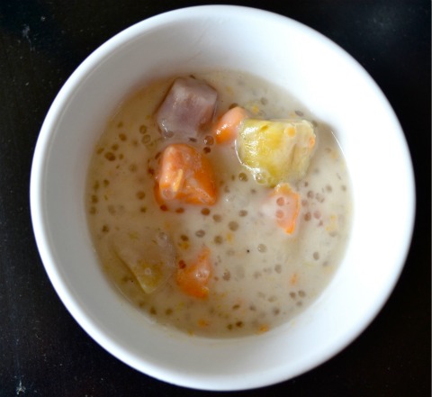 Contrary to a description usually reserved for savory items, it’s actually considered a popular dessert. The tiny tapioca pearls, larger gummy rice balls, pieces of a jackfruit’s sweet natural insides and, of course sugar, make this a sweet treat.