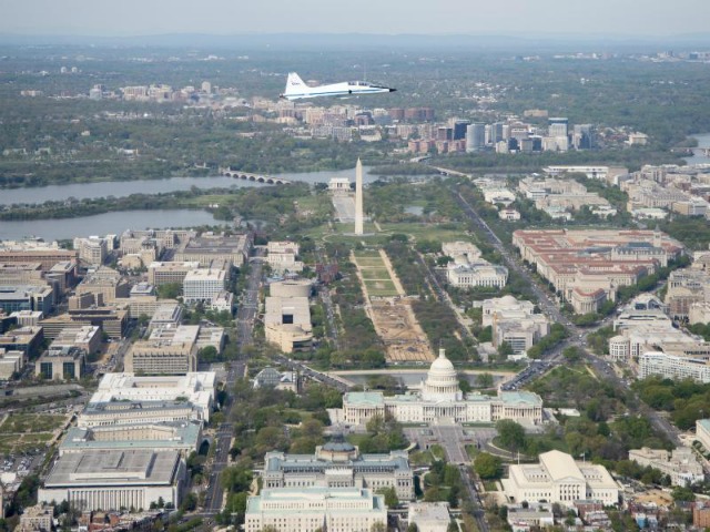 Last week, two T-38 jets took part in a NASA training flight in the sky above Washington. Today NASA published this incredible picture from the exercise, just as one T-38 flew in what is usually some of the country’s most restricted air space. This picture got us to thinking: what were the pilots thinking as they looked down upon our fair city from 1,500 feet up?