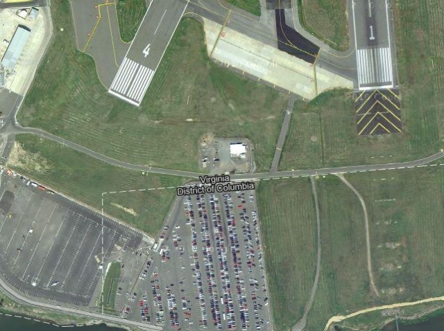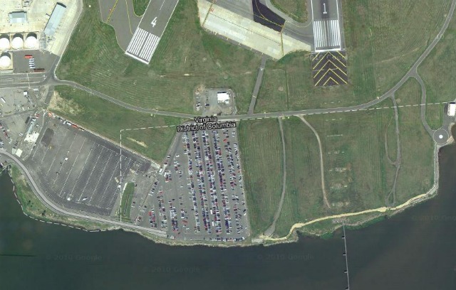 OK, that didn’t really happen, and no, no one is yet plotting to take back Arlington. (Yet.) But a watchful commenter pointed out an interesting quirk that appears on Google maps—the boundary between D.C. and Virginia suddenly cuts across the southern end of the airport’s land, granting us a small portion of what has long been considered part of Arlington County. There’s not much to it, really—just a parking lot and some grass—but hey, it’s a symbolic win for sure. (And more parking for D.C. drivers!)