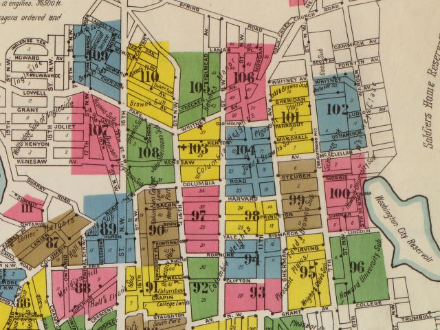 While it may be unfortunate that some of the better street names from that time were changed, there was at least some logic to it all—before the changes were made, east-west streets could go by different names depending on what neighborhood they were in. Kenyon Street—which was one of the few names that went unchanged—had once only run through Mt. Pleasant and Columbia Heights, turning into Marshall Street in the block between Sherman Avenue and Georgia Avenue (then known as Seventh Street or Brightwood Avenue) and Hancock Street thereafter. Park Road only really existed from where Mt. Pleasant Street is today until it hit 14th Street; to the west it was Lowell Street and to the east it was Whitney Avenue.