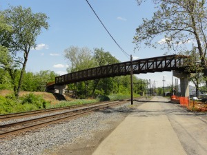 The Anacostia Riverwalk Trail Bridge opened today. It spans train tracks south of RFK Stadium and will eventually serve to connect a trail that will run from College Park to Nats Park.Gray used today’s ribbon-cutting of the new Anacostia Riverwalk Trail Bridge as a means to exemplify how his plan would build from small actions to ambitious goals. The new pedestrian/bicycle bridge, one of two connecting disparate sections of the Anacostia Riverwalk Trail, would help achieve the 20-year goal of ensuring that 75 percent of all trips taken by residents are by walking, cycling or mass transit. (The plan contemplates 80 miles of bike lanes throughout the city.)