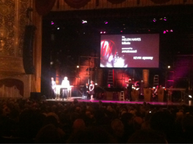 Kevin Spacey receives the Helen Hayes Tribute. (Photo via @MattyInDC)Signature Theatre’s production of Hairspray swept the musical categories at the 28th annual Helen Hayes Awards presented last night at the Warner Theatre. And while Synetic Theater’s wordless, but dazzlingly imagined version of King Lear collected four prizes, including for best ensemble, it was Arena Stage’s production of Ruined, Lynn Nottage’s Pulitzer-winning tale of survival in the Congo, that took the award for outstanding resident play.
