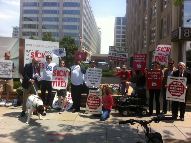 Medical marijuana advocates gathered in front of the D.C. Department of Health yesterday to demand that the city’s program be implemented more quickly.