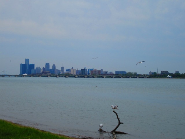 After trying unsuccessfully to lure Mel and Ryan’s cat Porkchop out of hiding with treats, we said goodbye to Garbage Cat, Twiggy, Winnie and Toledo’s breathtaking Old West End. First stop: Mexicantown on the south side of Detroit. Since it was the day after Cinco de Mayo, things were still plenty festive in this little gem of a neighborhood. There were people dressed up on horses (who were also dressed up). We found a restaurant with lard-free beans and had some $2 margaritas while waiting for our carry-out. We stuffed our faces in the lovely weather, snapped some photos of Hotel Yorba, and headed to Belle Isle Park for a lovely scenic drive with amazing views of the city. We’re told that Belle Isle used to be an attraction for upper class folks, but now it’s been commandeered for the people to relax and have family picnics.
