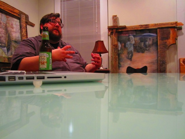We arrived at Monk’s Kaffee Pub around 9:00 p.m. and were told to set up in the basement, where there were some slow jams playing over the PA system, a Rickenbacker bass on a stand and an upright piano. Chris killed the slow jams and we set up. Rather, I should say that everyone else sat up while I sat like a slug on a couch, cursing my uterus. Rachel set up the mics and merch; such a handy lady. They have a camera on you at Monk’s so people sitting up at the coffee/booze bar upstairs can watch the show. That was pretty weird. There were only two people in the room when we started playing but probably about twenty by the time we finished. Greg improvised a little piano part at the end of “Rosalind,” our last song of the set.