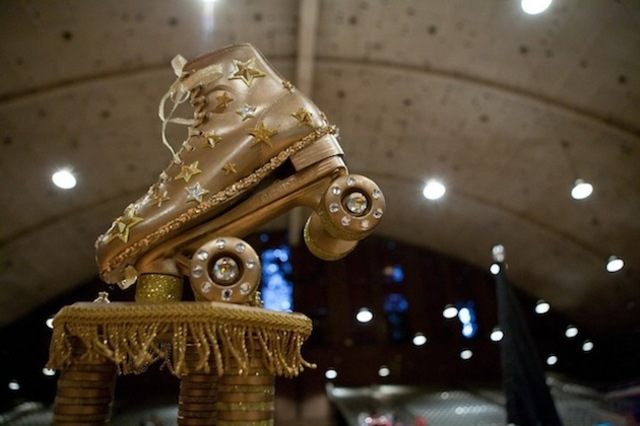 The “Skate of the Union”—D.C. Rollergirls’ hotly contested Championship trophy. (James Calder)Tomorrow afternoon Scare Force One and the Cherry Blossom Bombshells face off at the D.C. Armory to bring home the Skate of the Union—D.C.’s Championship trophy—and the right to call themselves the top team in D.C. roller derby. These teams last met in a breathlessly close bout in March, and the only sure winners on Saturday will be the folks in the stands watching D.C. derby at its best.